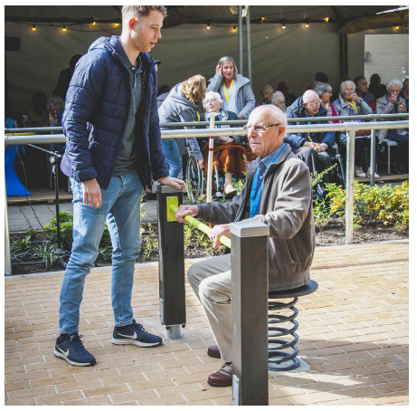 Het is even wennen, ouderen die trainen op een speeltoestel. Toch is het belangrijk dat juist de grote groep senioren meer gaat bewegen! Meer bewegen draagt bij aan een verbeterde balans, coördinatie en vergroot daarmee de zelfstandigheid. Vanaf donderdag 8 juni is de Kersenboogerd een nieuw sportief fenomeen rijker: een beweegtuin voor ouderen op het nieuwe Olga Commandeur plein.